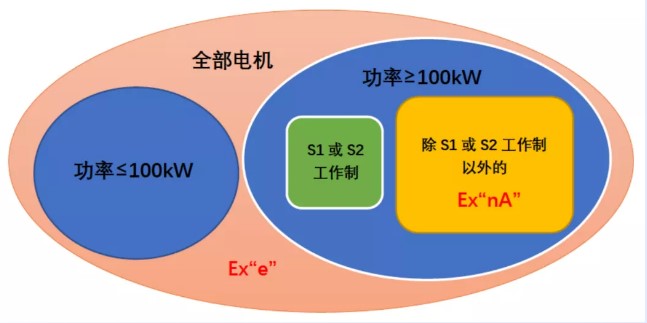 3. 對鼠籠轉子的要求,增安型電機均需對照GB3836.3-2010表4《對於鼠籠轉子點燃危險因數的潛在的氣隙火花危險評價》進行評定,而對於無火花型電機而言,隻有額定輸出大於100kW、S1或S2工作製除外的電機才需依照 GB3836.8-2014 表6《鼠籠轉子點燃危險因數的潛在氣隙火花危險評價》進行評定(區別見圖1),進而決定是否需要采取額外措施以保證電機起動和運行時不會發生引爆。